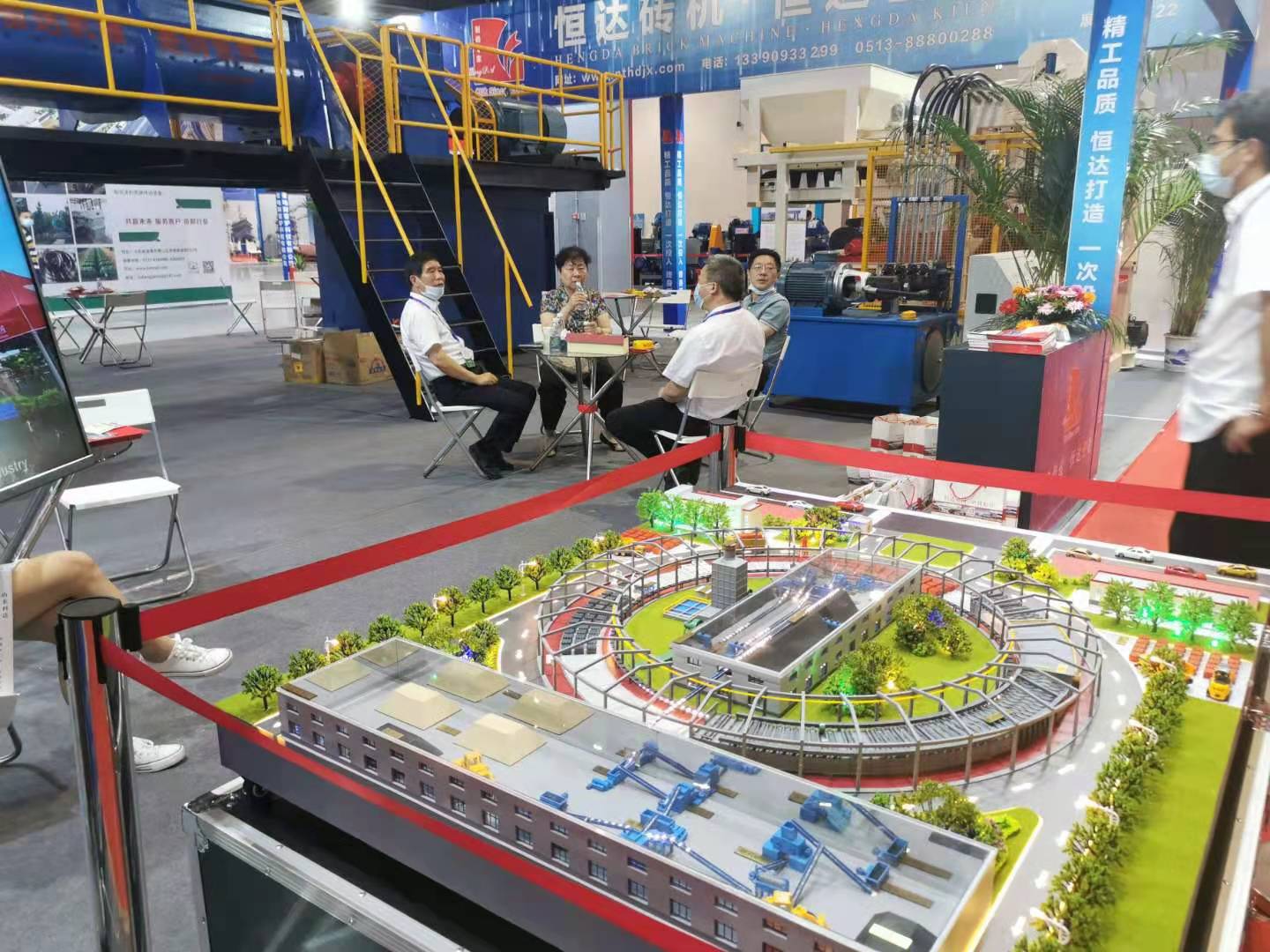 南通恒達(dá)公司作為中國(guó)磚瓦協(xié)會(huì)會(huì)員,中國(guó)砌塊協(xié)會(huì)會(huì)員,移動(dòng)式隧道窯行業(yè)標(biāo)準(zhǔn)起草單位,攜帶公司最新產(chǎn)品JKY75/65B-40真空擠出機(jī)(時(shí)產(chǎn)35000-50000標(biāo)磚),QT8-12混凝土磚機(jī)(100000標(biāo)磚/天),移動(dòng)式隧道窯逼真模型參展,作為為數(shù)不多的帶設(shè)備參展廠家,展位人氣爆棚,即使客戶不來(lái)公司實(shí)地考察,在展位就能真切感受到恒達(dá)設(shè)備的品質(zhì)精良。