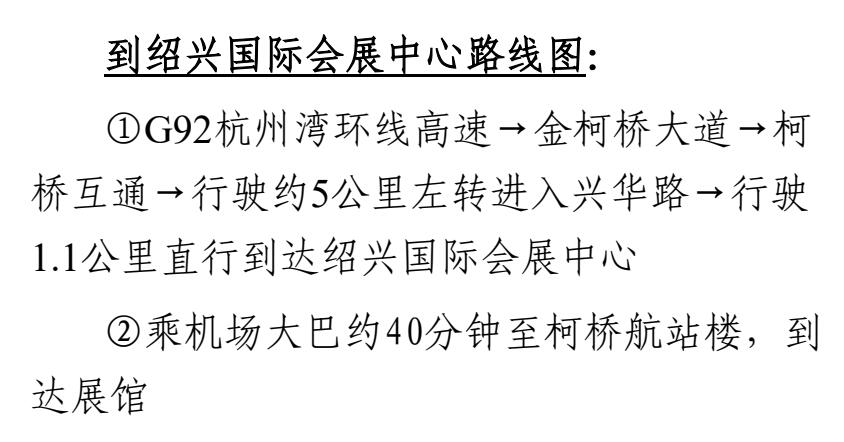 地點(diǎn):紹興國(guó)際會(huì)展中心(浙江省紹興市柯橋區(qū)金柯橋大道以東,柯袍線以南,鏡水路以西,綢緞路以北)